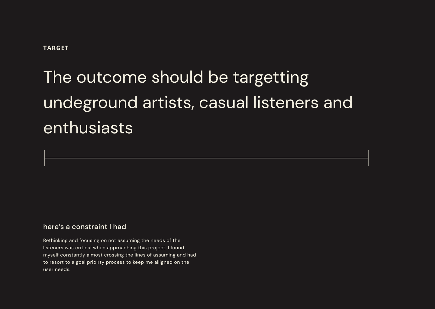 Scope of WorkDesign a user friendly platform that highlights underground artists but creates a customization feature for playlists and recommendations.